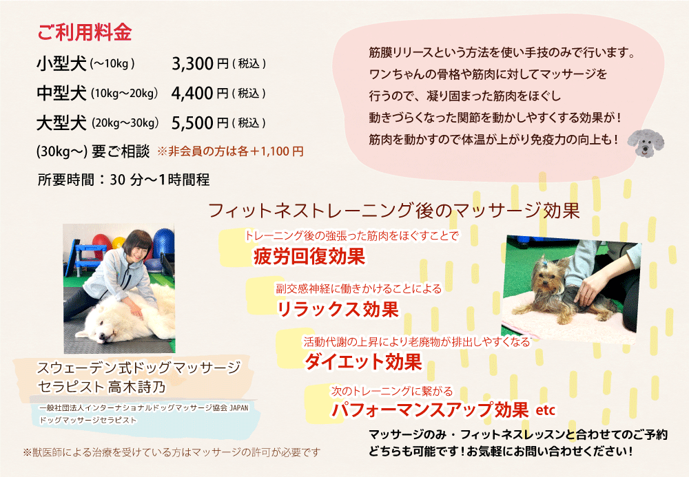 獣医師による治療を受けている方は事前にマッサージの許可が必要です。