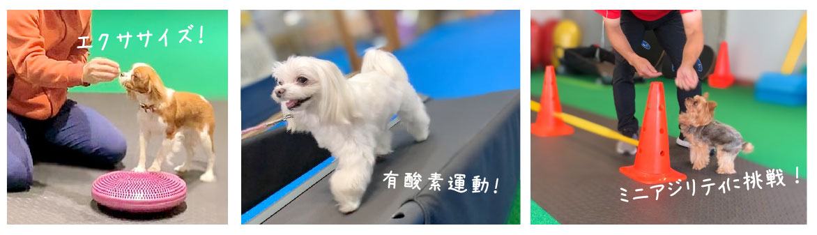 すべてのワンちゃんに欠かせない「体を動かす」ことを主軸としながら、フィットネスジム開店から5年間蓄積した幅広い知識・技術を基としてワンちゃんの健康につながる数々のアクティビティをご提供いたします!