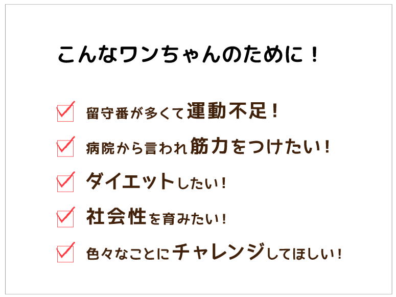 社会化・フィットネス・運動不足解消・しつけ・トリック遊び等